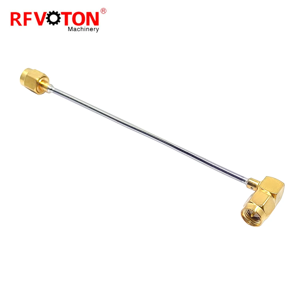 Výroba mužský konektor SMA na mužský konektor SMA 90stupňový s RG405 0.86 polotvrdý s měděným vnějším vodičem RF koaxiální kabel
