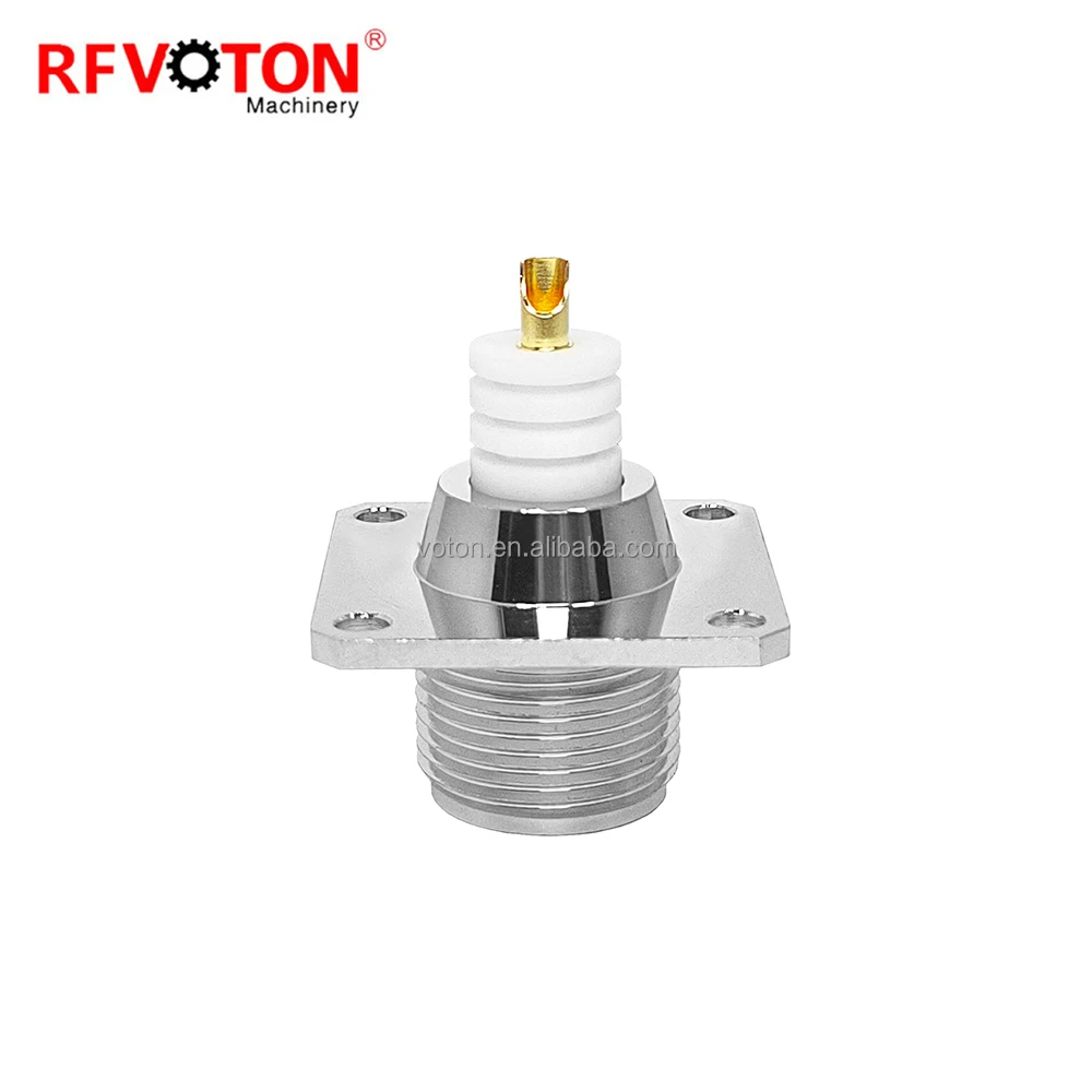Connettore Coassiale RF ad Alte Tensioni Femminile HN con Flangia a 4 Fori per Montaggio su Pannello con Cupola da Saldare in PTFE