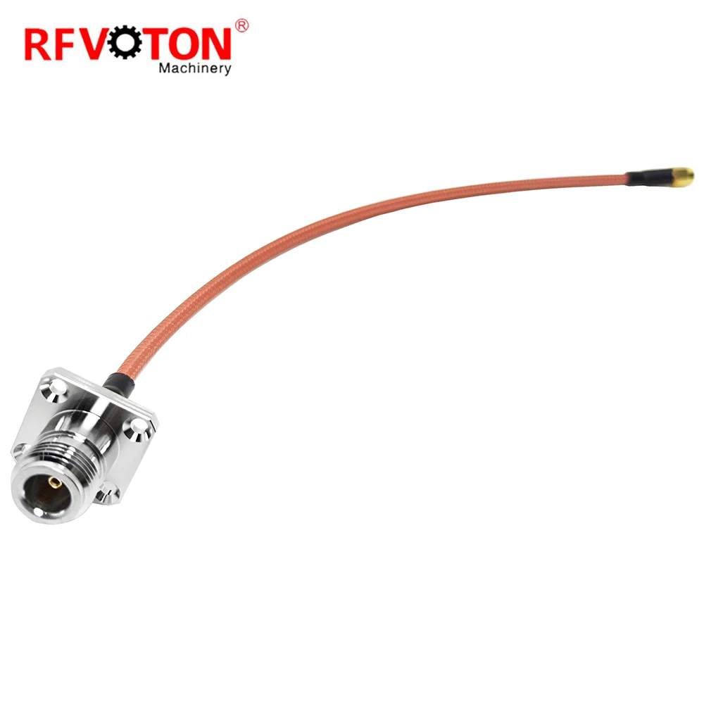N Betina 4 Lubang Flange Connector Penyolderan Mount Crimp untuk RG402 RG141 N Jack Flange Connectors