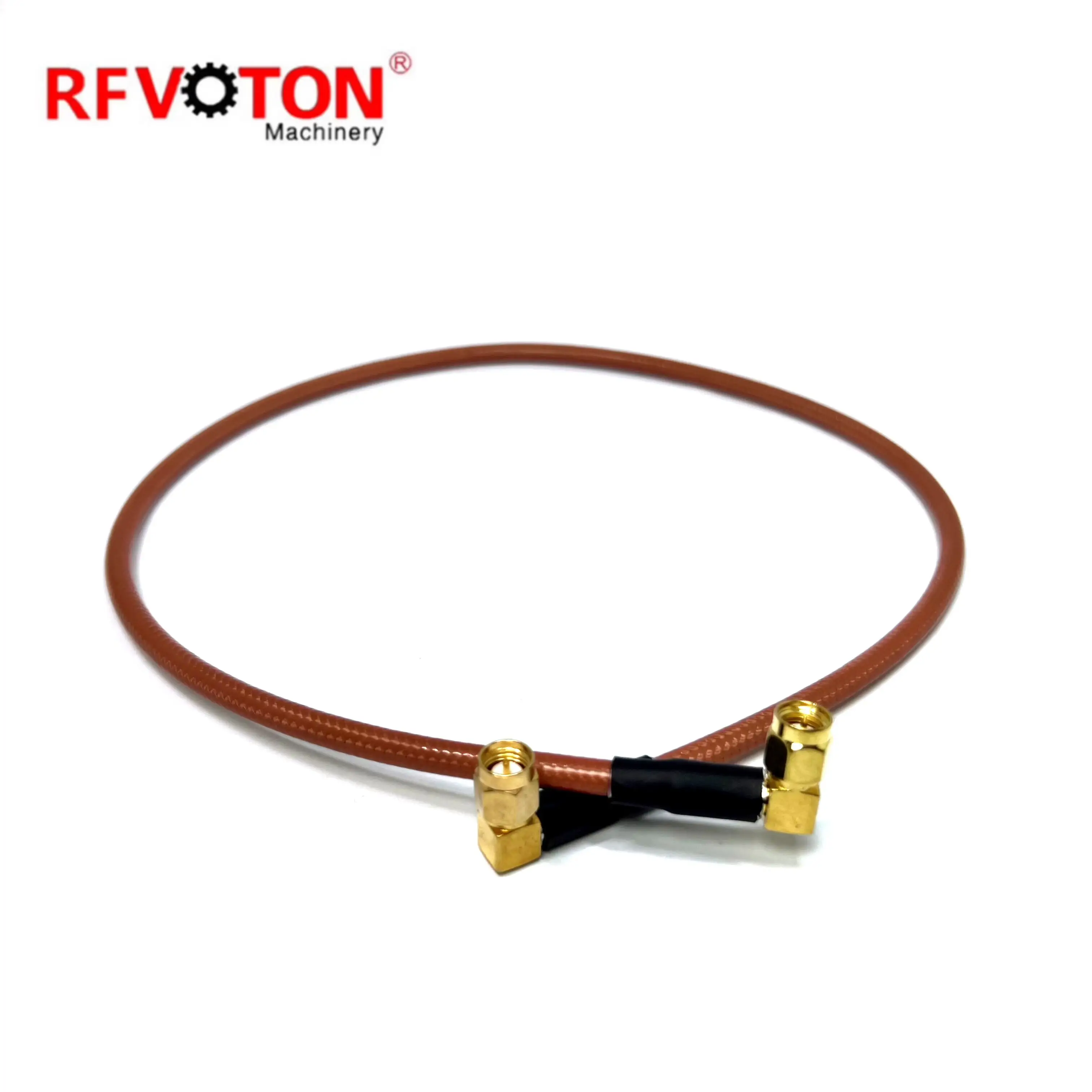 Pabrik menyediakan colokan sma jantan sudut siku-siku ke sma jantan berlapis emas 90 derajat rg142 rf kabel koaksial perakitan pigtail