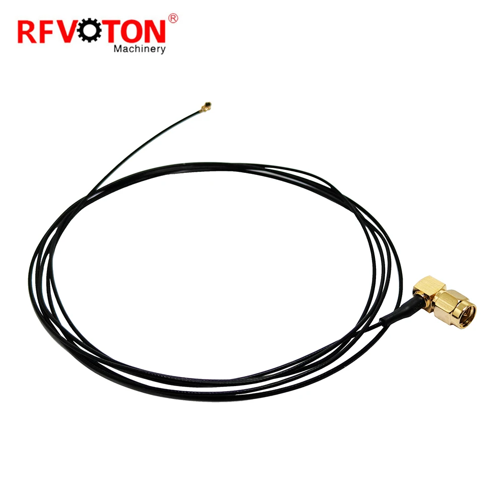 Fabriekslevering SMA-mannelijke stekker 90 graden naar U.FL-connector met 1,13 mm RG1.13 RF antenneverlengkabelsamenstel |