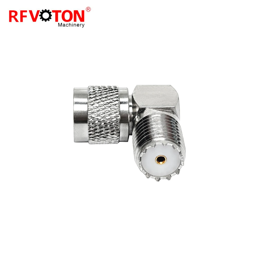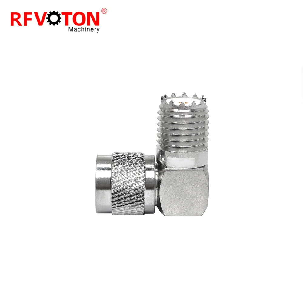 Zavodning xit aksiya taklifi Adapter Mini UHF erkakdan ayolga qo'sh tirnoq, o'ng burchakli poyabzal, 90 gradusli RA RF koaksial ulagichlar omborda mavjud